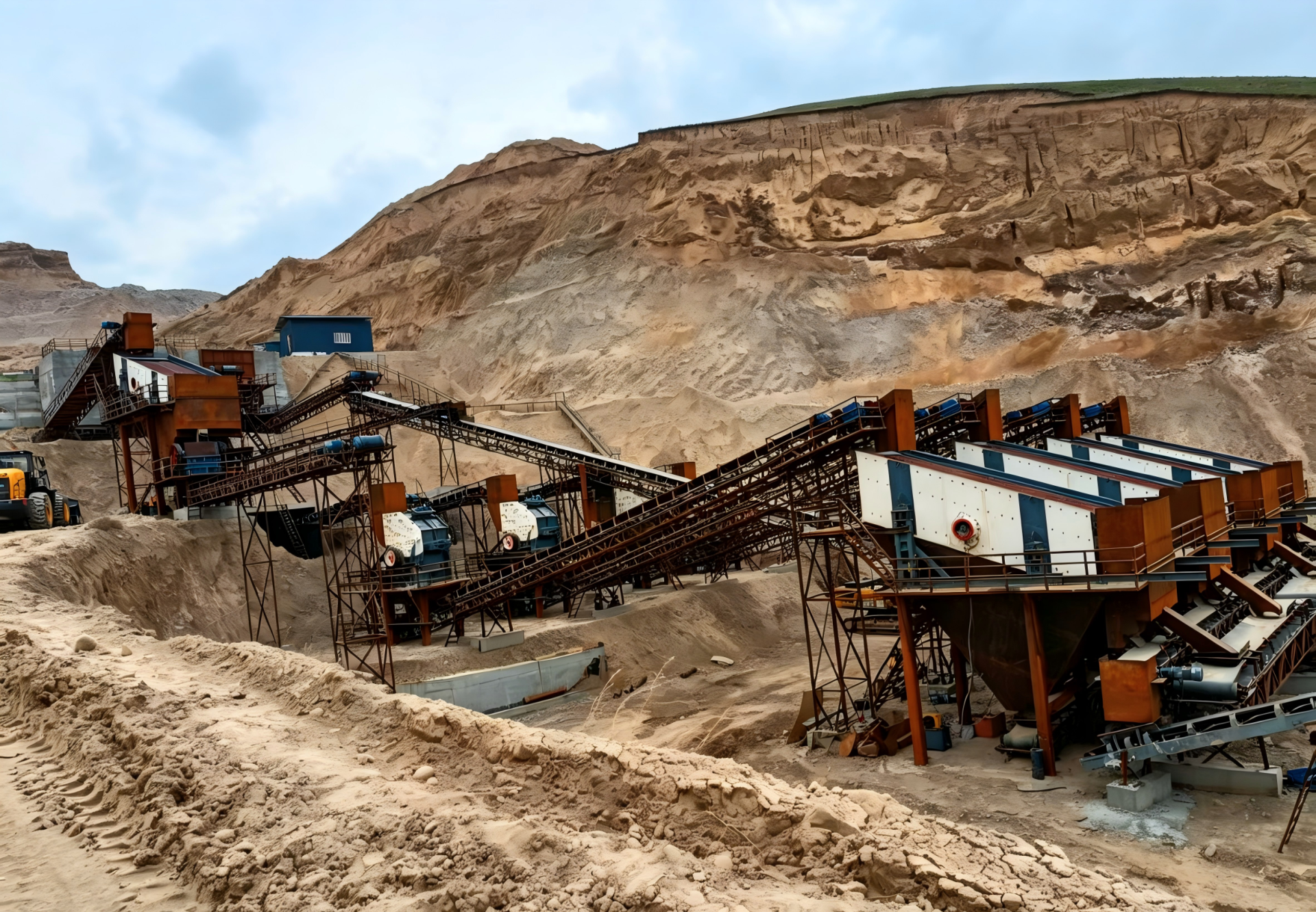 -除泥筛除渣泥:有效分离矿石、泥土与黏土杂质,大幅降低物料含泥量,为后续破碎、筛分、制砂环节提供洁净原料,减少破碎筛分设备的堵塞、卡料与过度磨损。