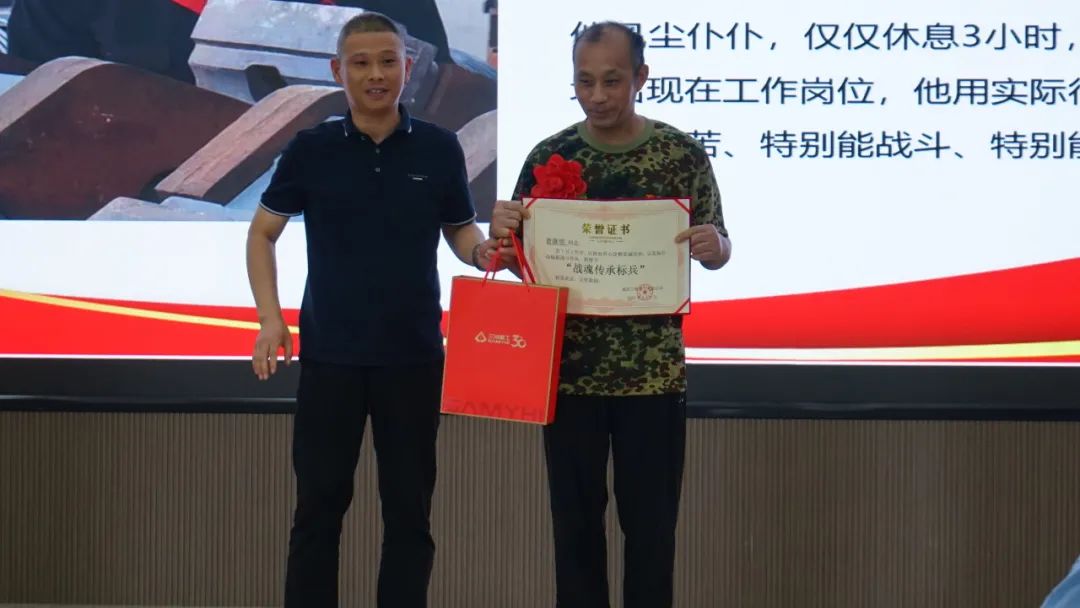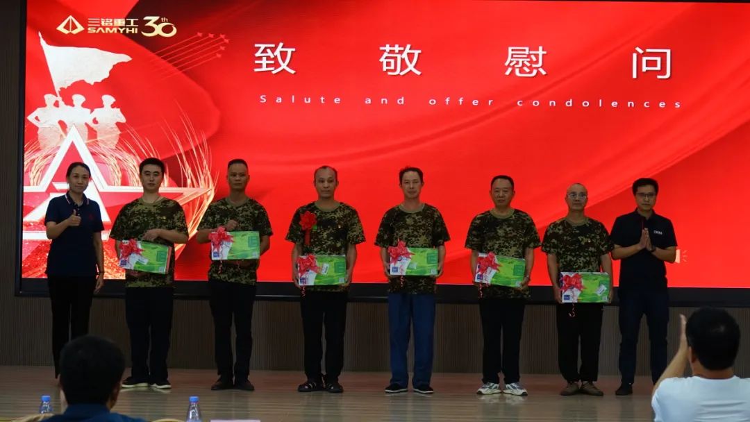 在庄严的《英雄赞歌》旋律中,公司为退伍军人举行了隆重的荣誉证书颁发仪式。当这些曾为国防事业奉献青春的同志接过纪念品时,老兵们用军礼致意,挺拔的身姿与坚毅的目光,彰显永不褪色的军人本色。这一刻,军人的忠诚担当与企业的责任使命交相辉映,共同谱写了一曲新时代的奋斗赞歌。在场每一位同仁都深切感受到,这种精神的传承必将转化为推动企业高质量发展的强大动力。