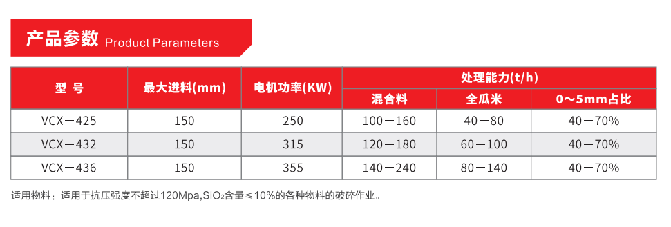 Suitable materials: limestone and other compressive strength is not more than 120Mpa,SiO₂ content ≤10% of all kinds of materials crushing operation.