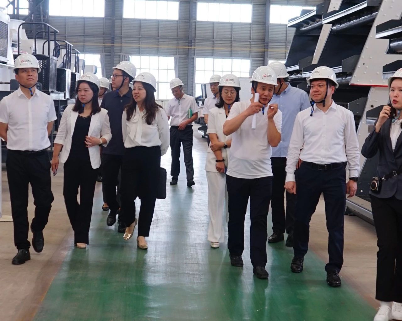 在董事长的陪同下,部长一行走进三铭重工智能化生产车间。工人们专注操作的身影与精密设备交相辉映,展现出民营企业蓬勃的生产活力。