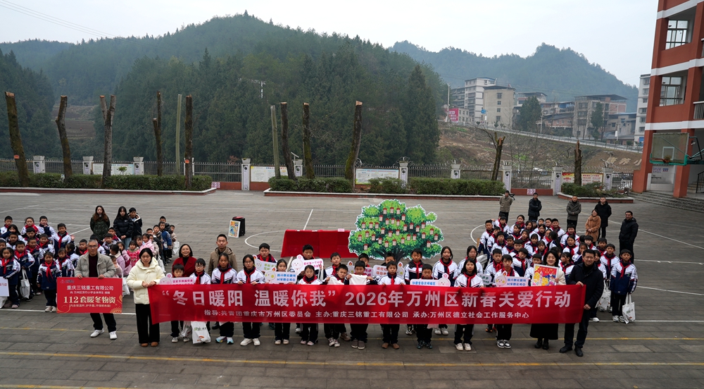 岁序更替,新元将至。值2026年元旦来临之际,共青团万州区委员会、万州区德立社会工作服务中心携手重庆三铭重工有限公司,共同发起“冬日暖阳·温暖你我”新春关爱行动,走进地处中高海拔山地的茨竹中心小学,为深山里的孩子们送去冬日暖意与新年祝福。