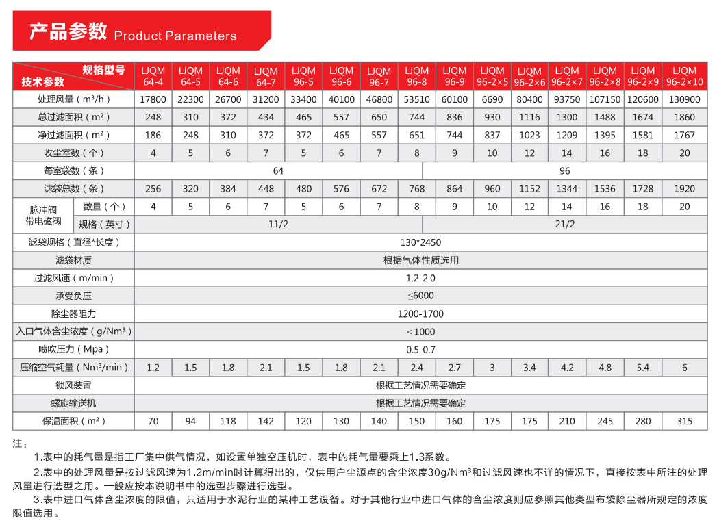 该产品是公司经国内外广泛使用,不断改进,在净化含尘气体方面取得了很大发展,由于清灰技术先进,气布比大幅度提高,故具有处理风量大、占地面积小、净化效率高、工作可靠、结构简单、维修量小等特点。除尘效率非常高效。是一种成熟的比较完善的高效除尘设备。含尘气体通过滤布时,滤布纤维间的空隙或吸附在滤布表面粉尘间的空隙把大于空隙直径的粉尘分离下来,称为筛分作用。对于新滤布,由于纤维之间的空隙很大,这种效果不明显,除尘效率也低。只有在使用一定时间后,在滤袋表面建立了一定厚度的粉尘层,筛分作用才比较显著。清灰后,由于在滤袋表面以及内部还残留一定量的粉尘,所以仍能保持较好的除尘效率。 对于针刺毡或起绒滤布,由于毡或起绒滤布本身构成厚实的多孔滤层,可以比较充分发挥筛分作用,不完全依靠粉尘层来保持较高的除尘效率。